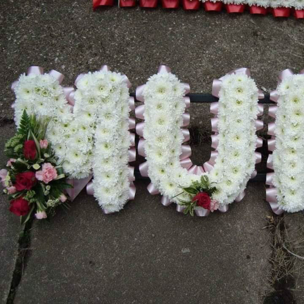 A beautifully personal tribute, your choice of letters available – simply let us know your requirements when ordering. If you require a different number of letters please contact me. We cannot guarantee what the flower varieties will be but please feel free to ask for a colour. Please allow a clear 3 days when ordering.